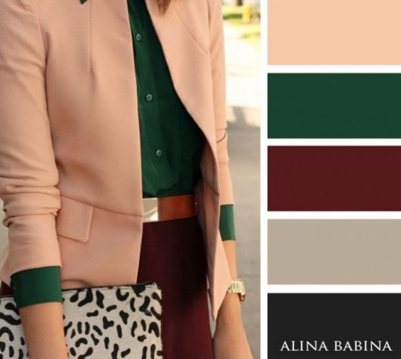 С какими цветами составить сочетание бордового зависит так же от его оттенка и назначения: так комбинация с яркими тонами относятся больше к вечернему стилю, а с нейтральными – для офиса и повседневной одежды.