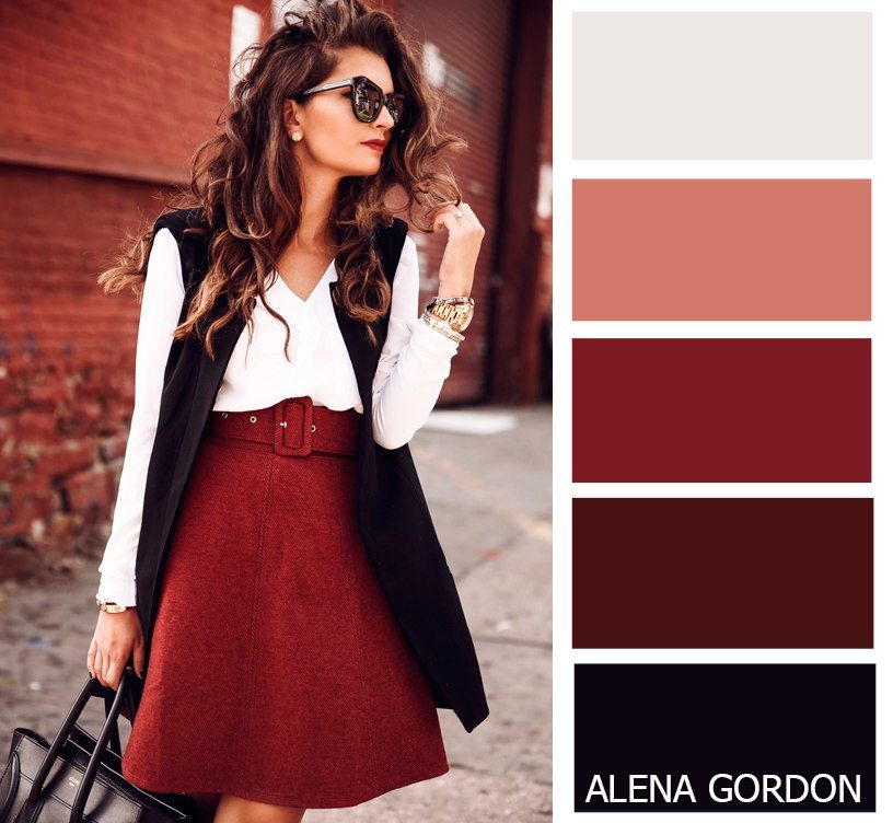 Сочетание бордового цвета наполненный энергией и женственностью. Каждый оттенок этого тона комбинируется по-разному. Примеры. Aото.