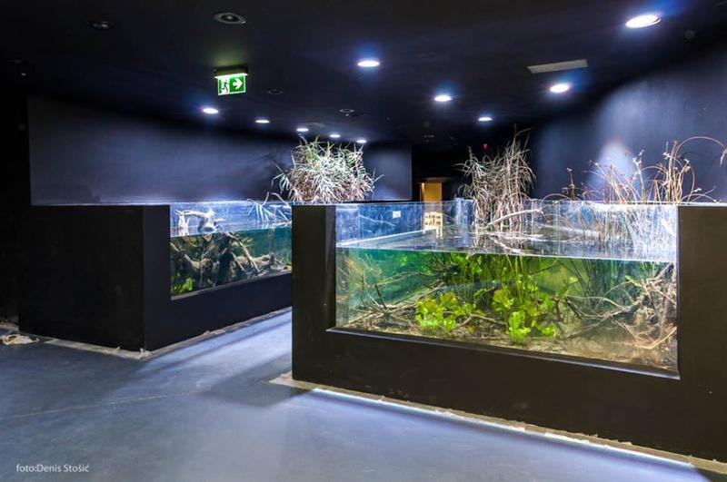 В нем живут преимущественно пресноводные рыбы, например южноамериканские цихлиды, арованы, арапаймы, паку. Также в нем можно встретить и трионикса. Кормят эту ораву 2 раза в день — сухой корм утром и 7 килограммов замороженной рыбы вечером.