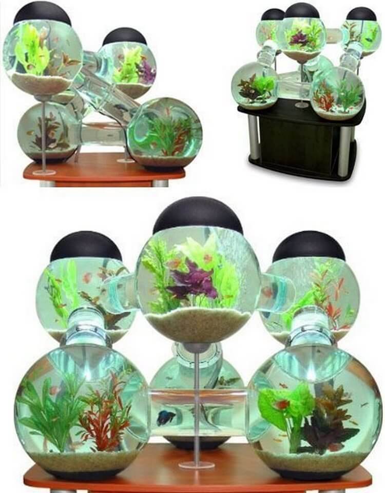 Иногда смотришь на рыбок, меланхолично перемещающихся по своему замкнутому королевству, и думаешь: «И не скучно им там?» Для тех, кто заботится о занимательном досуге своих водных подопечных, дизайнеры придумали аквариум-лабиринт, который можно сравнить с шестикомнатной квартирой для подводных обитателей. К сожалению цена, как у большинства дизайнерских вещей, высока — 6500 $. Но нам кажется, что можно взять за идею такое решение и придумать, как его осуществить, самим.