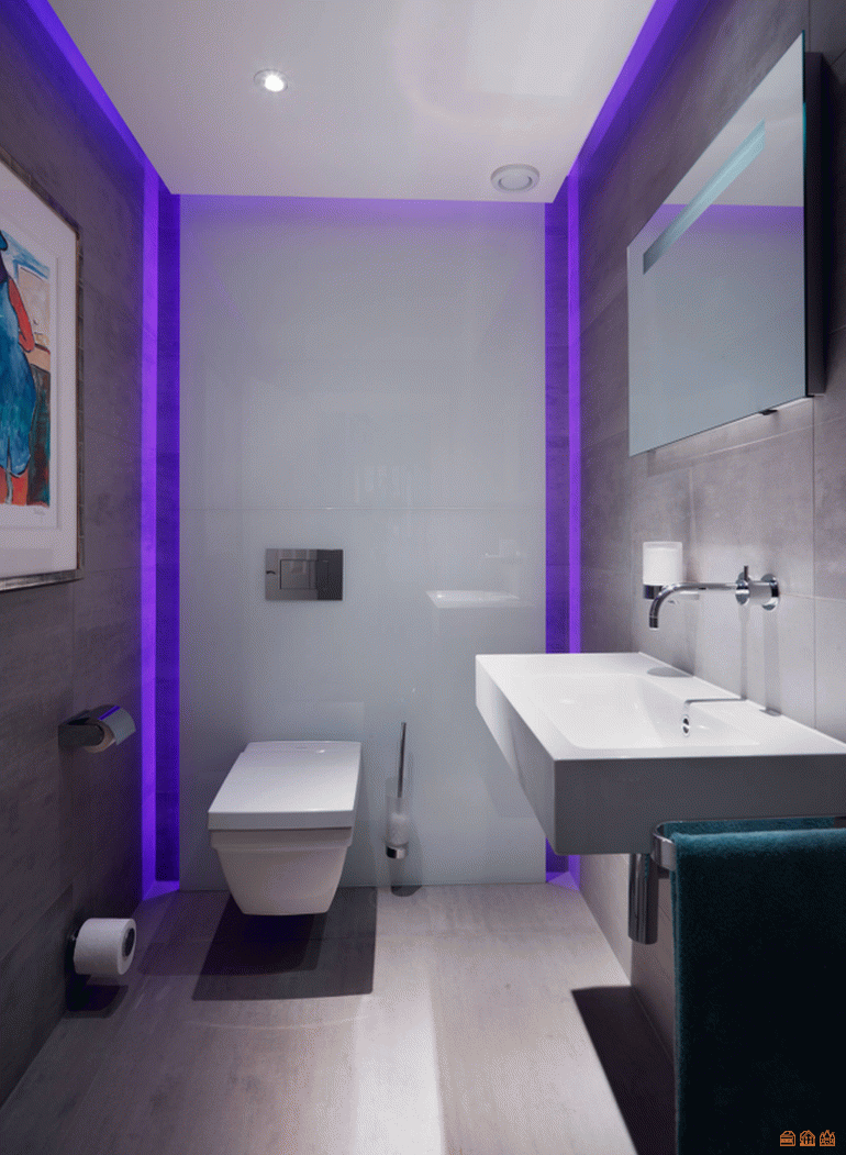 Источник: Mint Lighting Design Хромотерапия или другое светодиодное освещение придаст вашей ванной комнате футуристический и роскошный вид. Светодиодное освещение создаст оттенки света в душевой и на вашей ванне. Он полностью изменит ваше настроение во время принятия ванны.