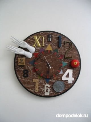 В стандартных наборах домино есть пластинки с цифрами от одного до двенадцати. Это как раз то, что нужно для создания самодельных настенных часов. Если у вас завалялась эта старая добрая игра, но ее качество оставляет желать лучшего, подкрасьте домино с помощью акриловых красок или лака для ногтей. Данная хитрость поможет вам сделать и яркие пластинки. Так что если вас не устраивает черно-белый вариант – все в ваших руках.