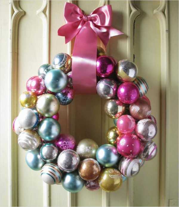 Праздничные венки из елочных шаров.