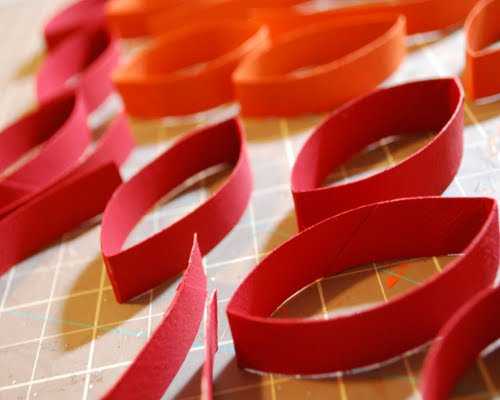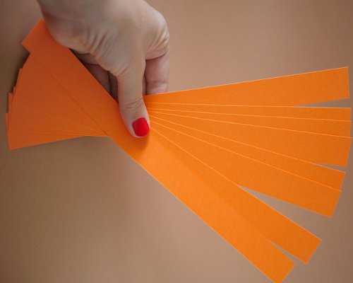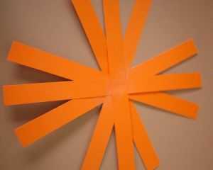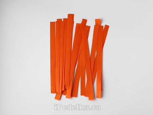 1. Из бумаги оранжевого цвета нарезаем поперек полоски шириной приблизительно 2,5 см.