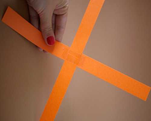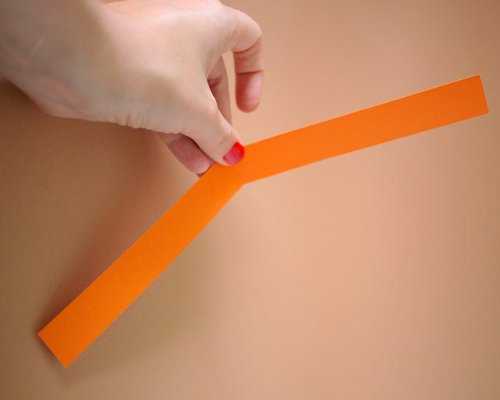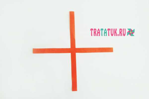 3. Складываем две первые полоски накрест в месте сгиба.
