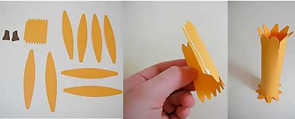 5. Ствол тыквы делаем из плотно скрученной бумажной полоски шириной 3 см.