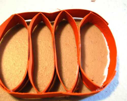 - Снизу и сверху добавляем еще по одной полоске из картона (просто разрезаем две заготовки) и придаем форму тыквы.