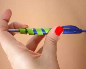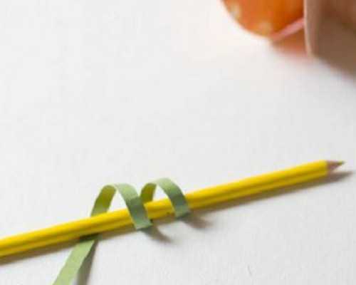 8. Из зеленой цветной бумаги вырезаем полоску и накручиваем ее на карандаш или ручку.