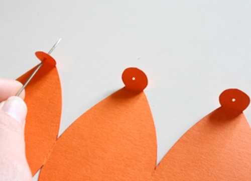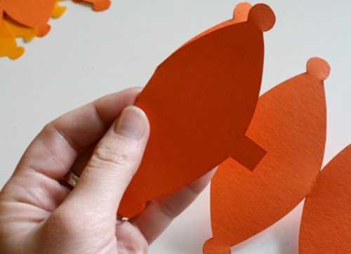2. Далее все заготовки из бумаги для тыква своими руками складываем пополам, чтобы отметить середину.