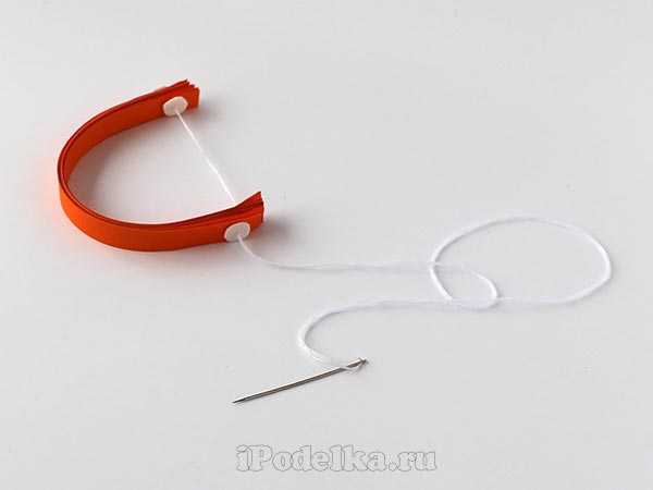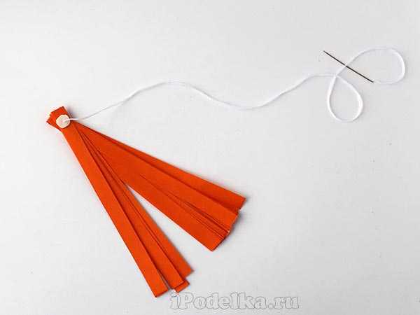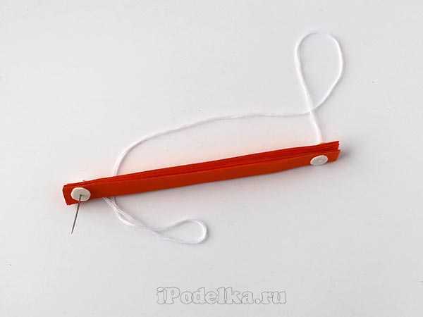 С помощью иголки с ниткой собрать полоски, с двух сторон зафиксировать маленьким кусочком картона.