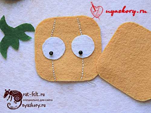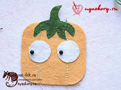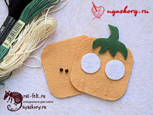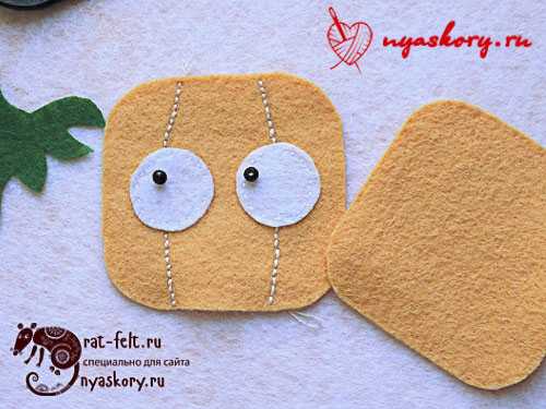 - Втыкаем булавки, чтобы получились глаза.