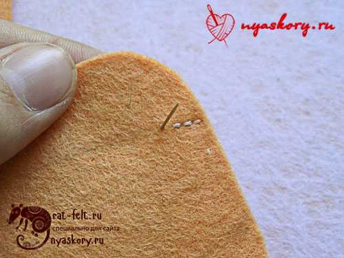 - Вводим иглу в нижний противоположный край и слегка стягиваем. Должна получиться дуга.