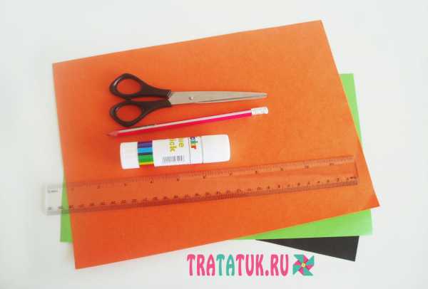 - по 1 листу цветной бумаги зеленого, оранжевого, черного цвета;