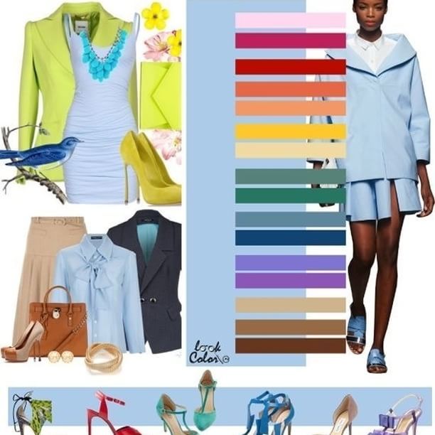 Сочетание серо-голубого цвета в одежде не сложно, в то время как с ярко-голубым комбинировать другие яркие цвета намного труднее.