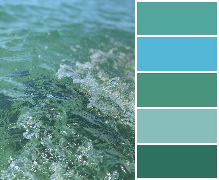 Зелено-голубой сочетается с холодным зеленым: цветом воды, ментоловым, цветом Келли, изумрудным, холодным темно-зеленый. Базовые: сливочный, серый, мокрый асфальт.