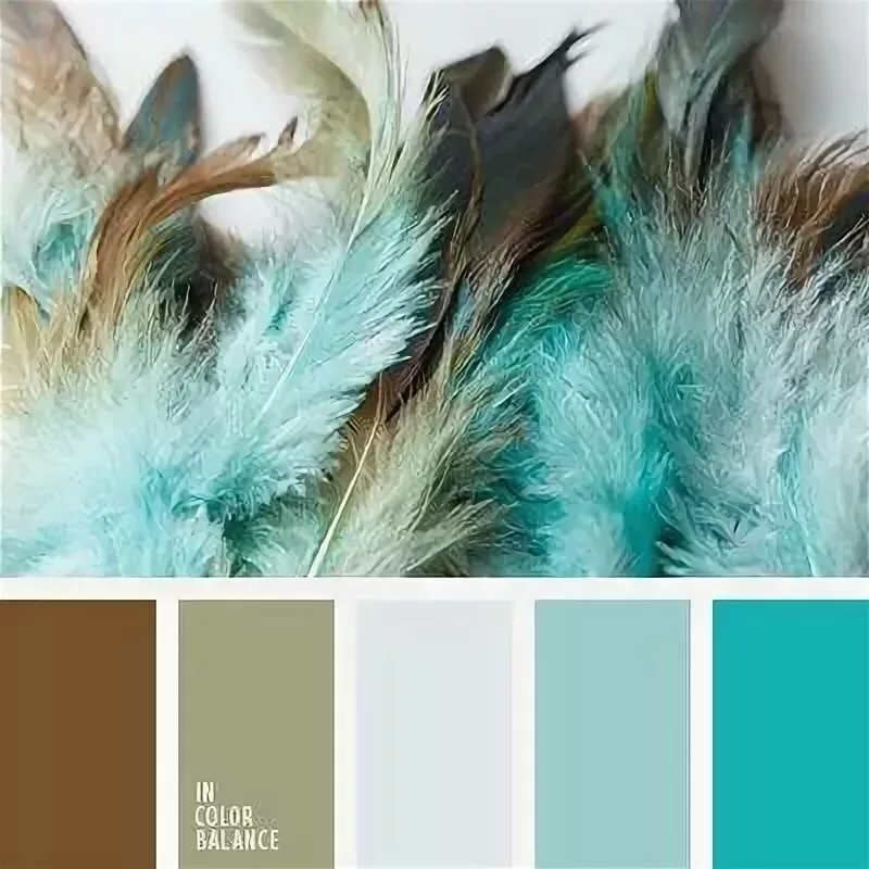 Зелено-голубой сочетается с розовым: бежево-розовым, оранжево-розовым, закатно-розовым, фуксией, малиновым. Поддерживающие тона: сливочный, серебряный, антрацитовый.