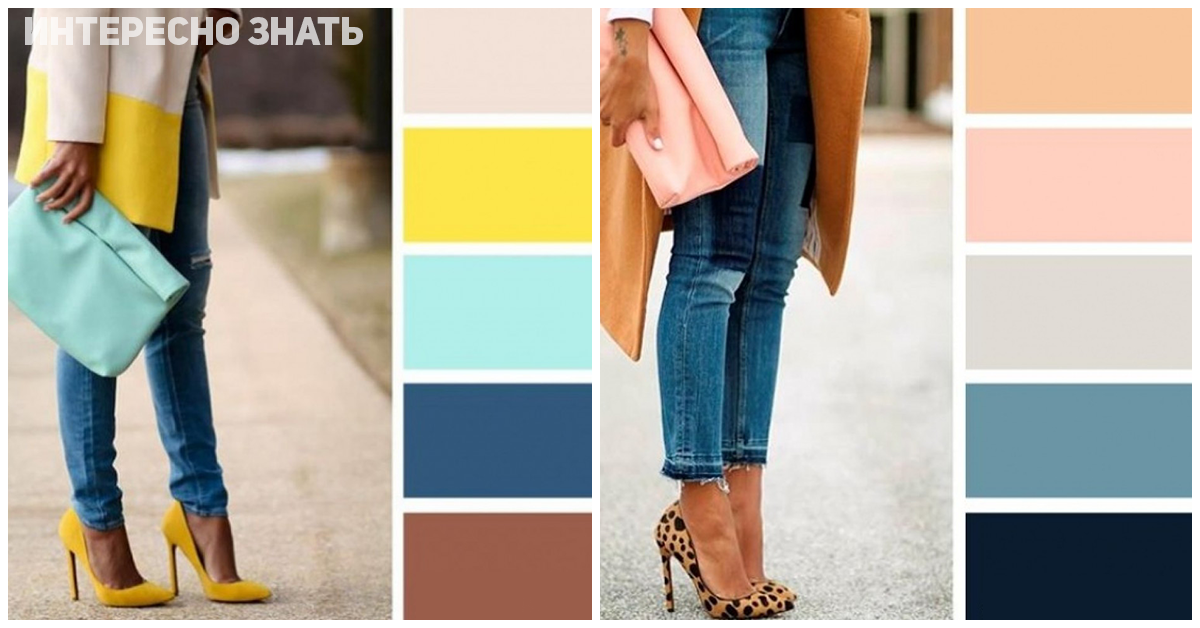 Такие сочетания прекрасно подойдут и для солнечного летнего сезона, и для зимнего – что напомнит о летнем ясном небе посреди серой зимы. Для более стильного эффекта в это небесно-холодное сочетание можно добавить кремовые, сливочные, телесные оттенки – они немного оттенят голубой цвет и сделают образ визуально более завершенным.
