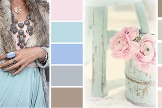 Сочетание пастельных цветов в одежде с серо-голубым открывает массу возможностей – любые оттенки, в любых количествах и в любых пропорциях. Серо-голубой цвет можно разнообразить как одним пастельным оттенком, например, персиковым (для ощущения контраста), так и несколькими, например, родственным нежно-голубым, бледно-розовым и сиреневым.