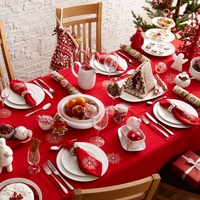 Традиционная белая скатерть никогда не выйдет из моды. Выглаженная и накрахмаленная, она всегда смотрится эффектно, делая нарядным любой стол. Хотя сегодня можно встретить и специально смятые скатерти, которые вносят в интерьер нотки небрежности, тем самым разбавляя пафосность новогоднего вечера и снимая напряжение.