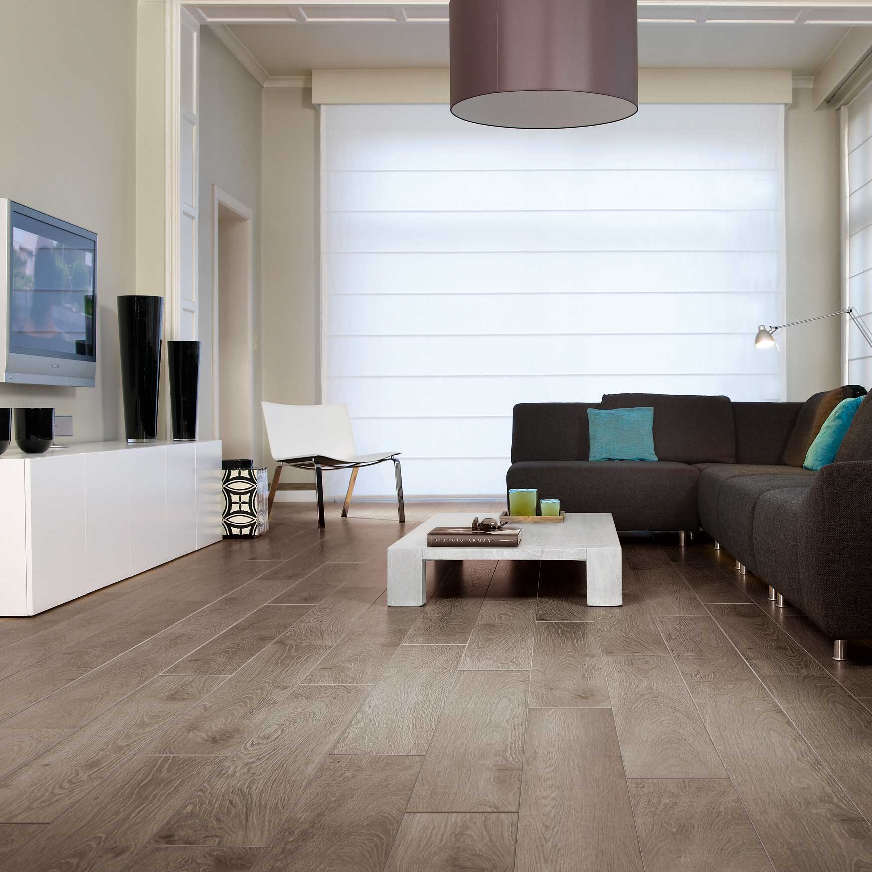Для начала следует определиться с оттенком темного ламината. Производители предлагают обширный выбор из разнообразия ассортимента. Каждый цвет влияет на интерьер по-своему. Теплый шоколадный оттенок смотрится дорого. Он способен подарить гостиной уют для семейных встреч и покой для ведения неспешных бесед с друзьями. Также такой оттенок способен облагородить кабинет и придать образу его хозяина решительности и брутальности.