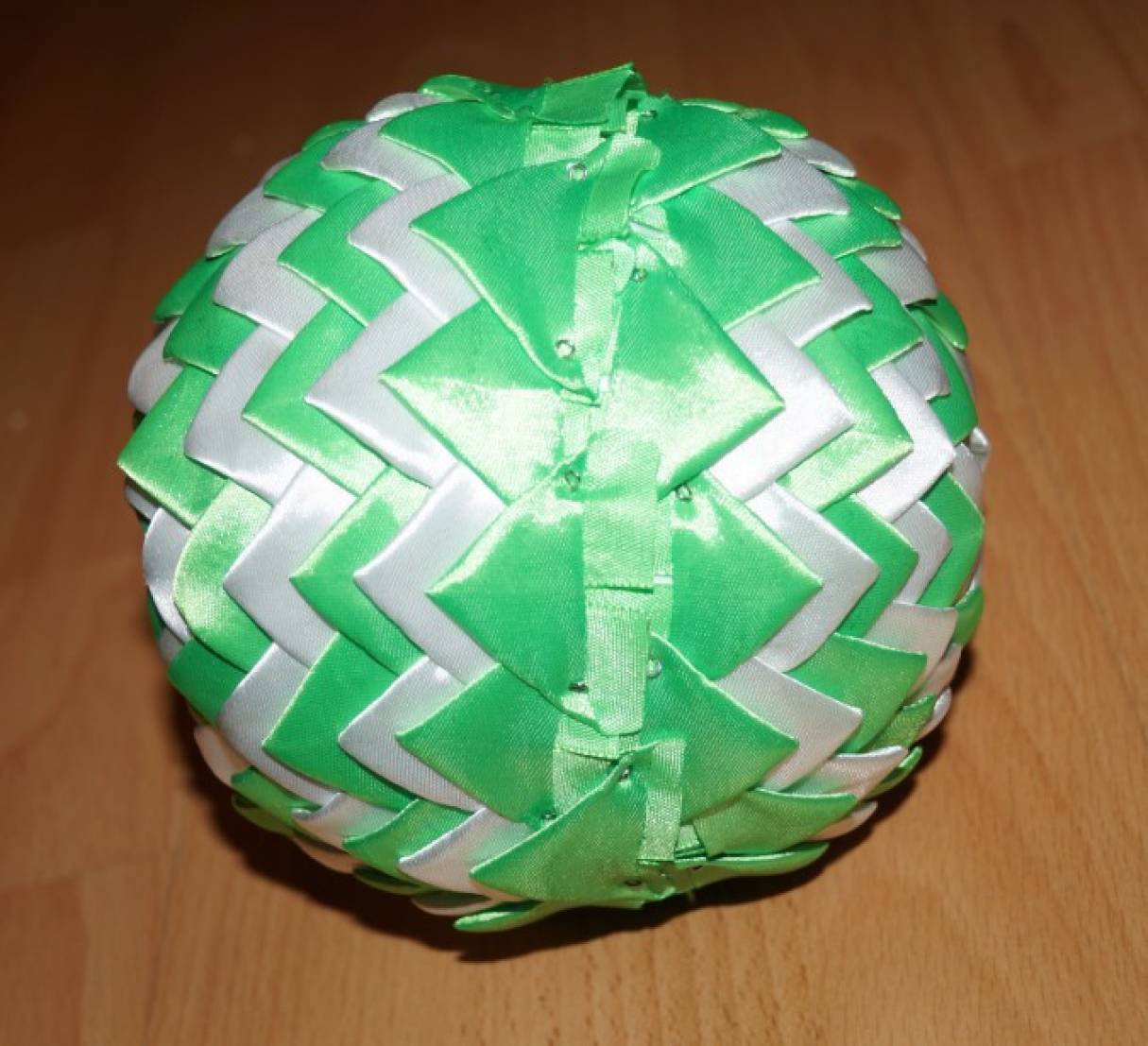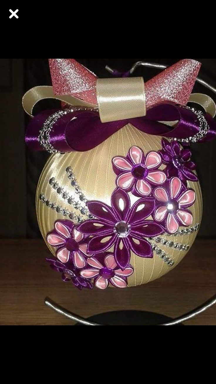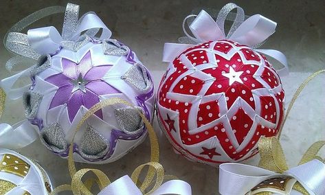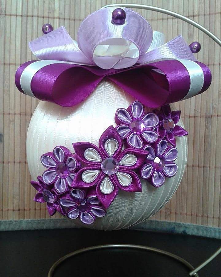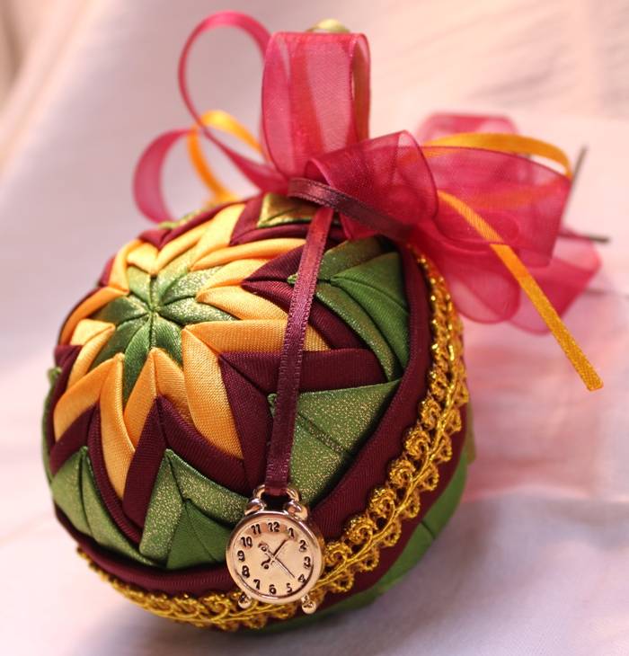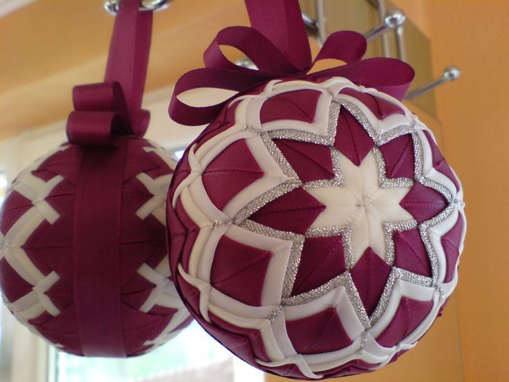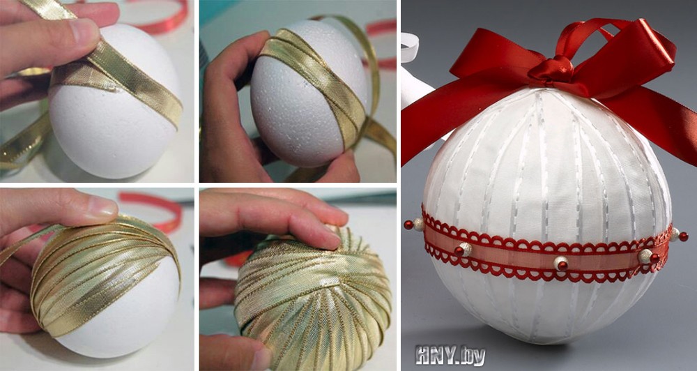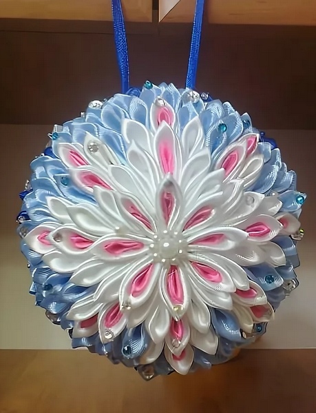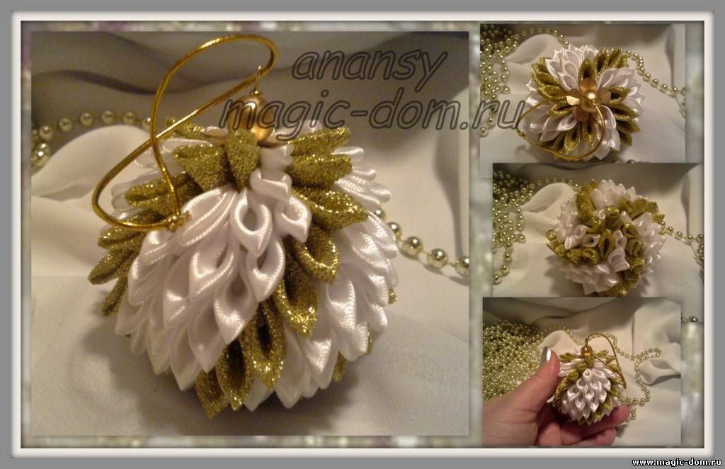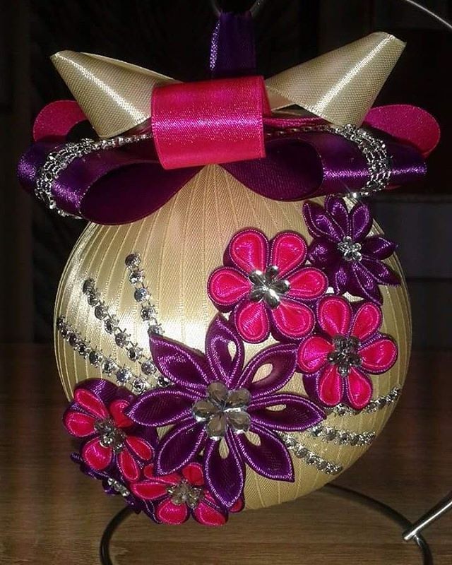 Новогодние ёлочные шары из лент своими руками