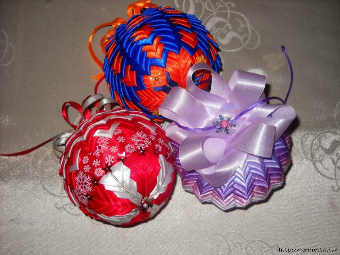 Новогодние шары канзаши, мастер-классы с фото и видеоинструкциями