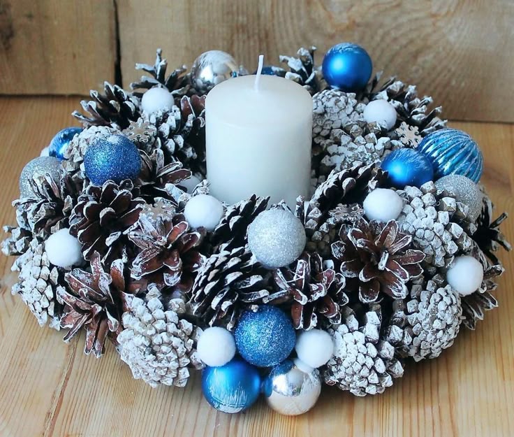 Планируете поставить длинные свечи? Прислоните к ним шишки разных размеров. Благодаря этому нехитрому ходу ваш элемент декора точно не останется незамеченным.
