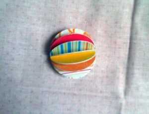Для изготовления новогоднего шара из ткани Вам понадобится: пенопластовый шар, ткань нескольких цветов, английские булавки (очень много!), бусины, ножницы, клей.