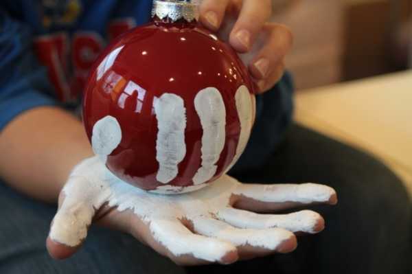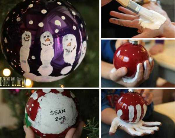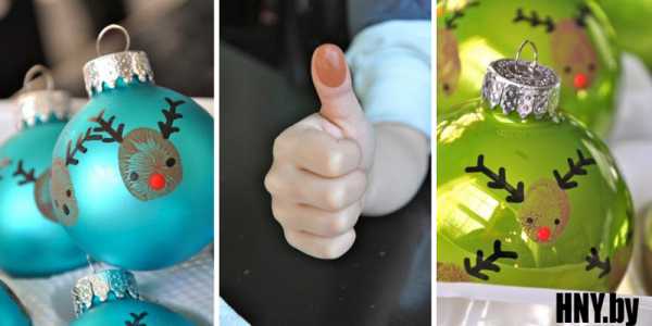 Отличной идеей для всех, кто хочет запечатлеть мгновение, станет изготовление шаров, украшенных отпечатками пальцев близки людей. А маленькая ладошка может поместиться целиком. Стоит только представить, какое щемящее чувство вызовет изделие через несколько лет напоминая о первом Новом годе малыша.