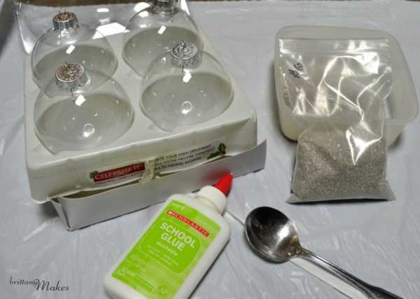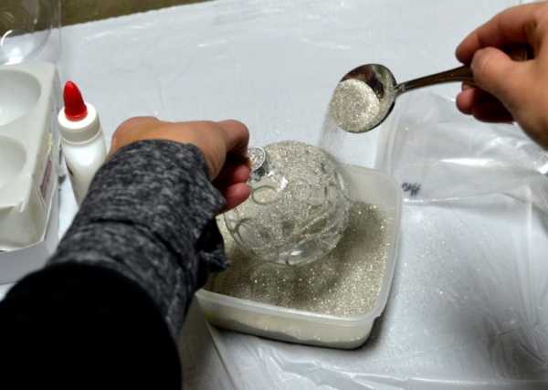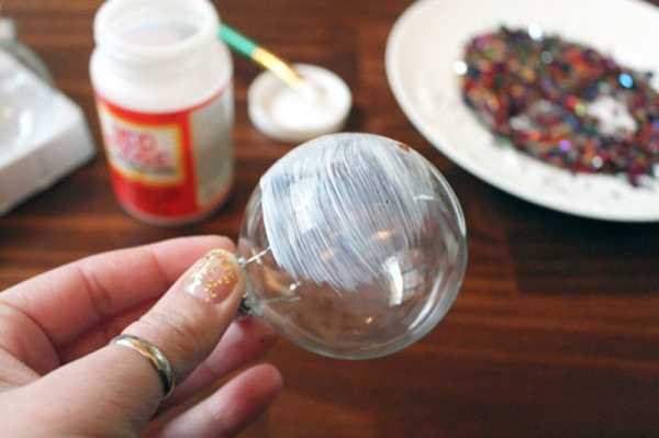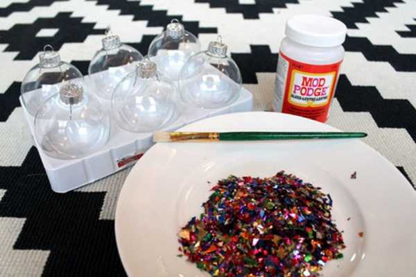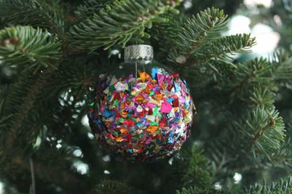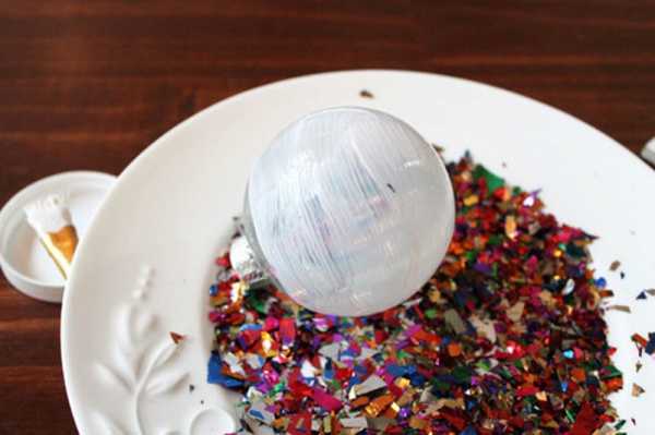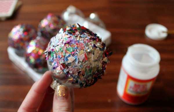 Украшаем елочные шары с помощью конфетти