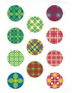 Можно распечатать готовые цветные кружочки для изготовления пестрого новогоднего шара в этой технике.