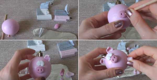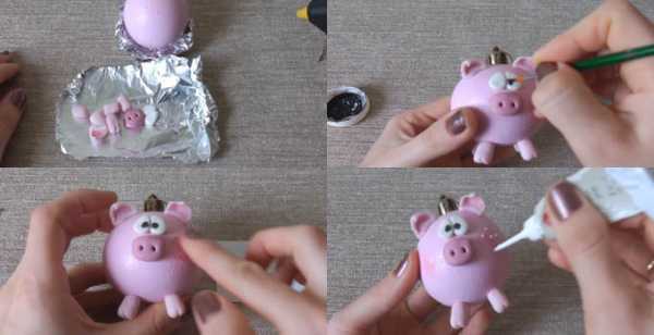 Свинка из новогоднего шарика