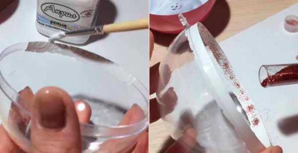 Самим легко можно сделать сверкающую вещицу. Для этого понадобятся блестки россыпью или пайетки. Обильно смазав основу клеем, просто приложить поверхность вещи к блесткам и дать клею высохнуть.