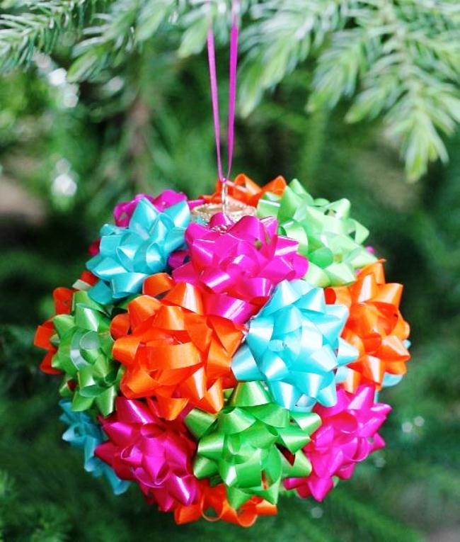 Елочный шар, декорированный лентами