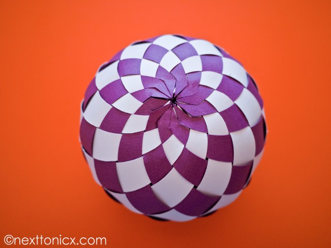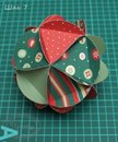Теперь по приведенной выше технологии сделайте двенадцать цветочков. Когда они будут готовы, склейте их между собой так, чтобы получился шарик. Лучше сделать одну половину сферы, а потом — вторую.