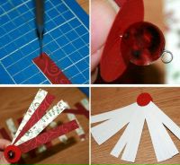 Что нужно для работы: бумага разных цветов (можно также брать оберточную бумагу с различными новогодними рисунками), клей и ножницы, стакан и атласная ленточка. Опять нужно будет с помощью стакана вырезать из разной бумаги восемь кружков. Но вот размер кружков должен быть разным — от маленького до достаточного большого.