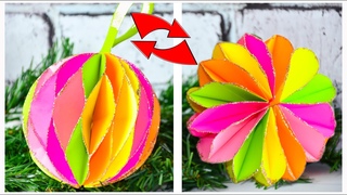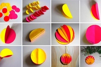 Как сделать объемный шар из бумаги. Из разноцветной бумаги можно сделать очень красивую игрушку в виде шара. Их можно использовать для украшения дня рождения, вечеринки или просто повесить на елку в новый год