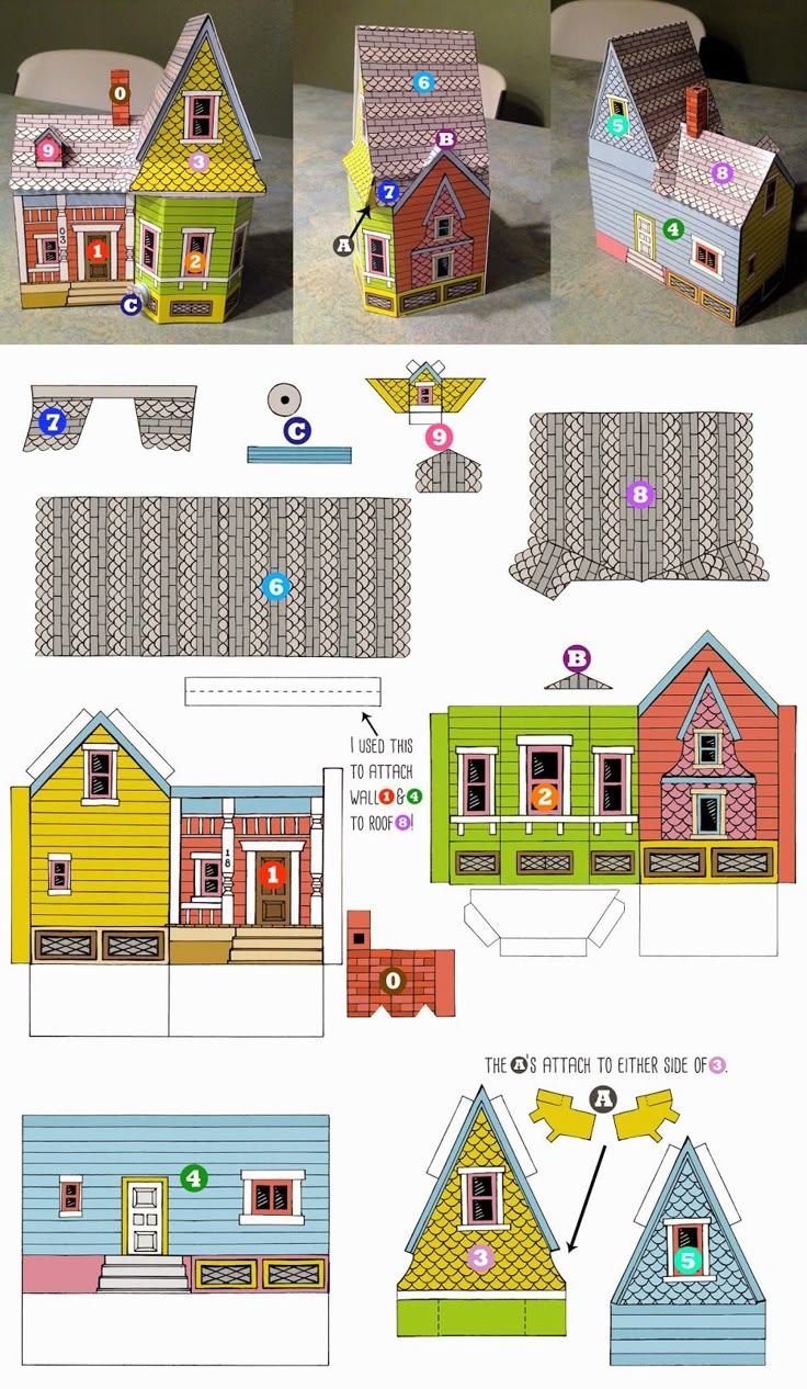 Макет игрового дома собирается по следующей инструкции: