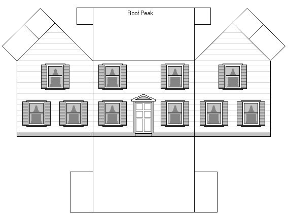 В первую очередь рекомендуем скопировать нашу схему, которую вы видите на фотографии, для того чтобы обозначить размеры будущей постройки. Затем нужно решить, какая у макета будет длина и ширина. Напишите эти цифры на схеме. Далее определите высоту первого и второго этажей, а также крыши. Теперь можно перенести полученный чертеж на лист-основу с помощью линейки и карандаша, отмерив все параметры будущего дома. На следующем этапе необходимо начертить окна и двери. Их расположение можно изменять как угодно, полагаясь на свой вкус.