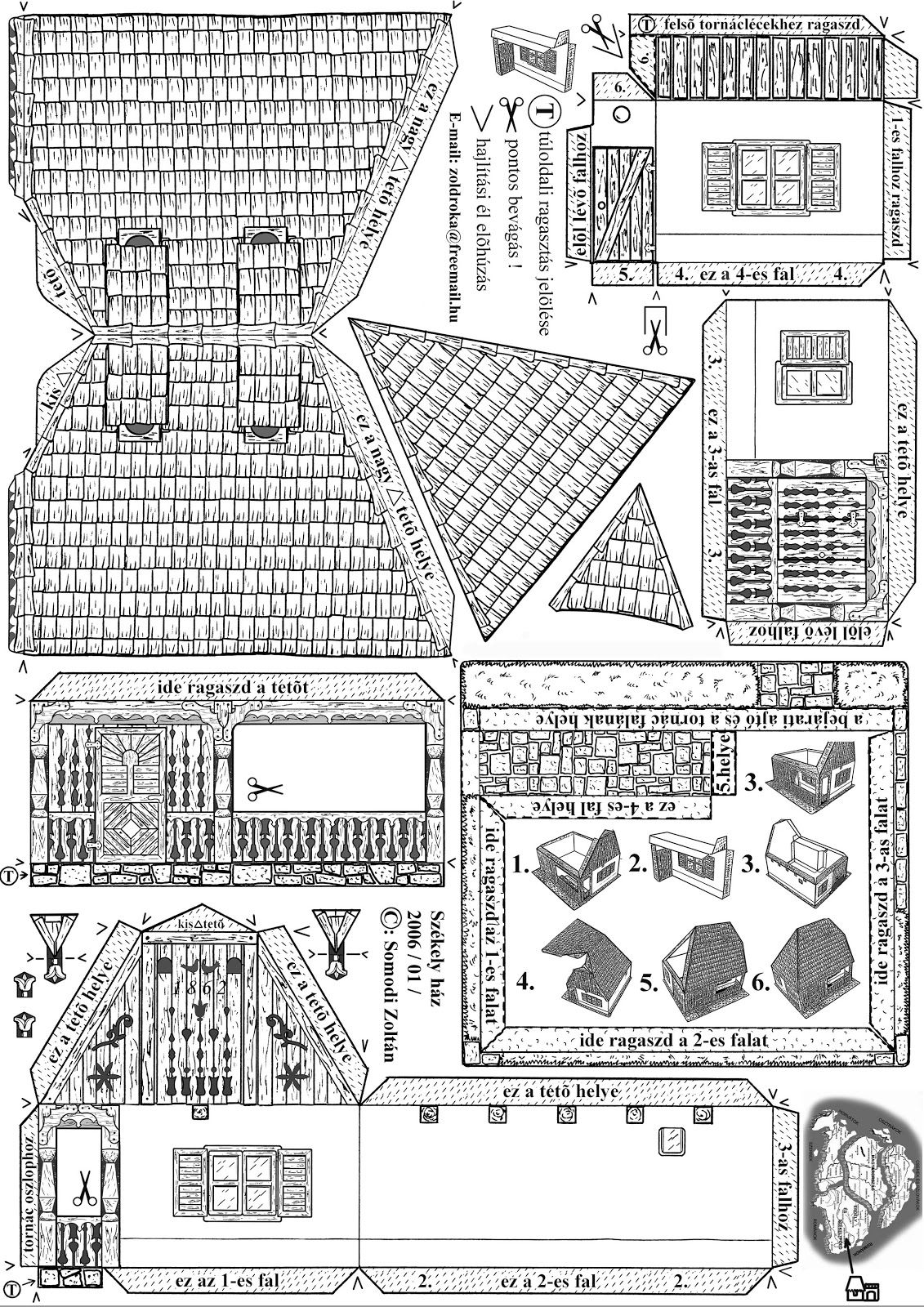 - Полученная фигура вырезается и приклеивается сзади конструкции, образуя заднюю стенку дома.