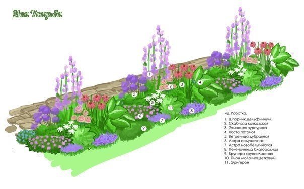 2. Еще одна клумба из многолетников. Расположение у стены здания или у забора.