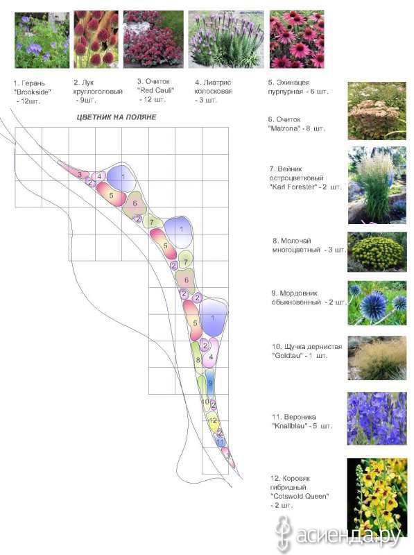 Схема.Готовые схемы клумбы и клумбы из многолетников