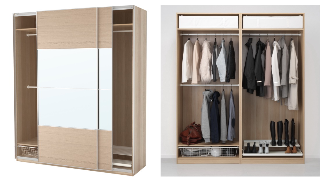 Корпусный или встроенный, распашной или купе — внутренняя организация системы хранения во многом зависит от конкретной модели гардероба. Например, у одностворчатого распашного и двухдверного шкафа-купе в прихожую наполнение будет разным.