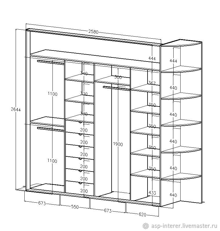 Шкаф купе внутри с размерами: советы, варианты, фото с размерами