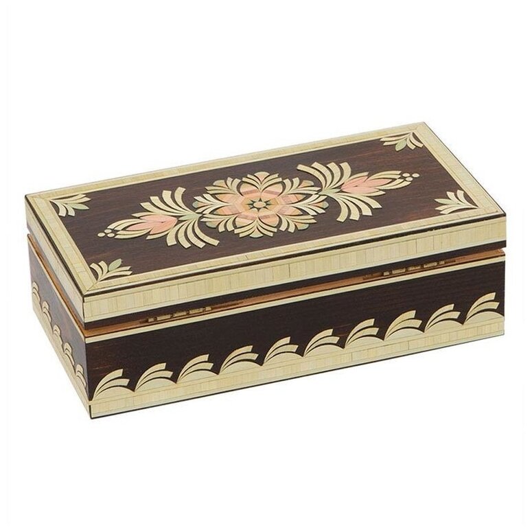 Древесина – экологически чистый материал, который до сих пор активно используется при изготовлении шкатулок. В производстве может использоваться массив кедра, клена, палисандра и других пород. В большинстве случаев это ручная работа, которая высоко ценится. Изделия получаются эксклюзивными благодаря художественной резке или росписи.