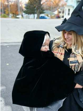 Если в роли колдуньи в день всех Святых решила появиться девочка, можно сделать такой костюм: