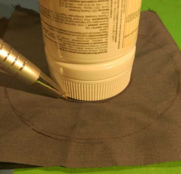 Складываем ткань так, чтобы лицевая сторона оказалась внутри. Чтобы Вам было легче, можете приложить картонную выкройку и пометить мелом её расположение внутри. Крепим булавками по отмеченным мелом и идём к швейной машине, можно прошить поля на руках, всё на Ваше усмотрение 🙂 Полностью прошиваем большую окружность, переворачиваем её на лицевую сторону и вставляем внутрь картон. Низ почти готов.