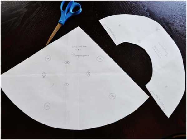 Если все было сделано правильно, в итоге должна получиться выкройка, аналогичная юбке-солнцу. Ее можете изначально использовать как макет, заменяя обхват талии на обхват головы.