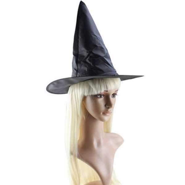 Шляпа-колпак. В наряде ведьмы главным аксессуаром является шляпа, которая называется колпаком. Этот атрибут может быть разным – с широкими полями или с маленькими, дополненный вуалью или без нее. Выбирая этот аксессуар, важно учитывать свой тип лица, поэтому без примерки не обойтись. Круглолицым колдуньям подойдут высокие шляпы-колпаки с широкими полями, от небольших шляпок с маленькими полями стоит отказаться. А вот девушкам с узким лицом последний вариант подойдет идеально.