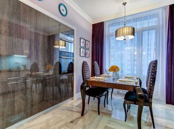 - кухню лучше декорировать, используя холодный сиреневый оттенок, который не усиливает аппетит, особенно эффектно он будет сочетаться со светлыми тонами;